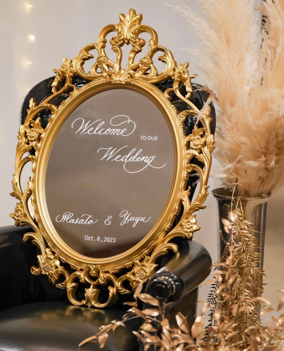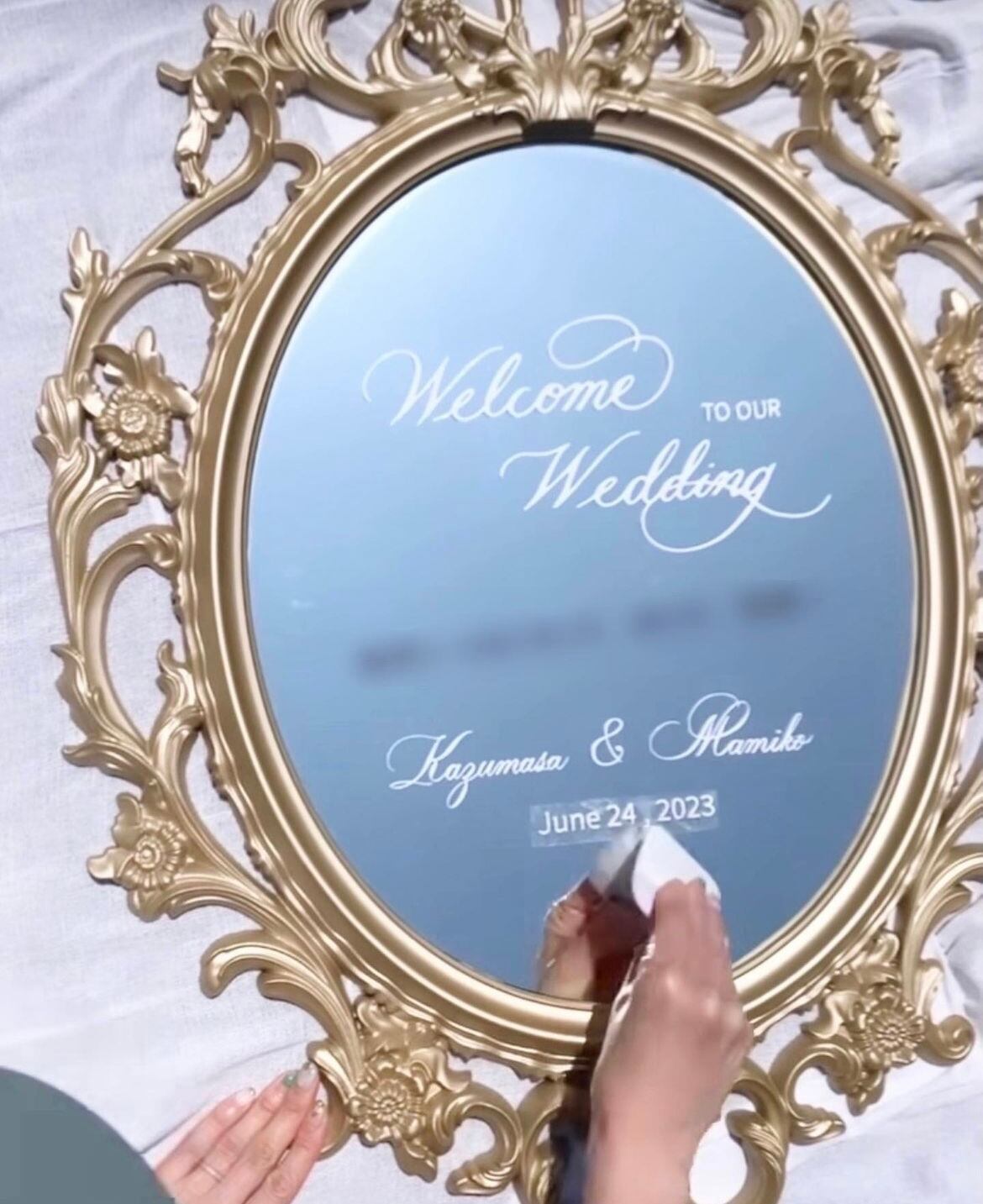 【カリグラフィー文字ステッカー付き】ウェルカムミラー